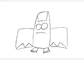 关于动物、蝙蝠的简笔画,空中飞翔的蝙蝠简笔画教程。
