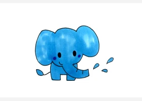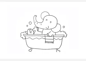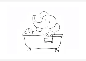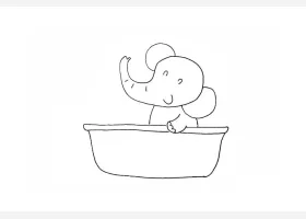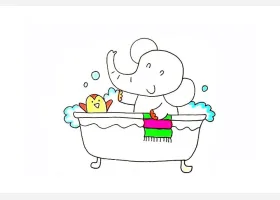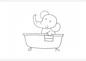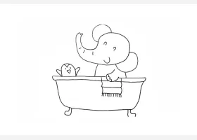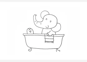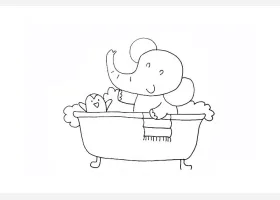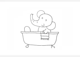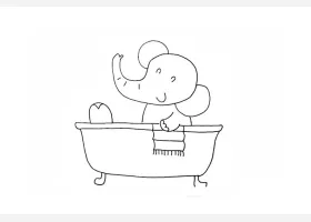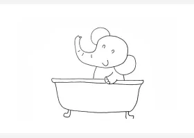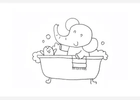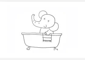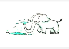 关于卡通、大象的简笔画,爱洗澡的小象简笔画教程。