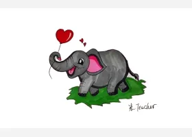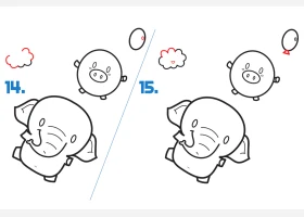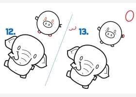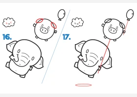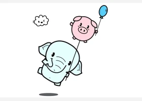 关于卡通、大象的简笔画,拿着猪气球的可爱大象简笔画画法步骤。