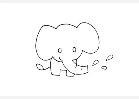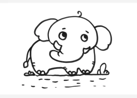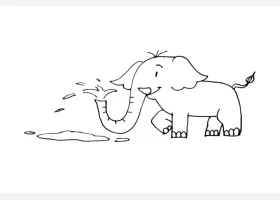 关于动物、大象的简笔画,在玩水的大象简笔画画法教程。