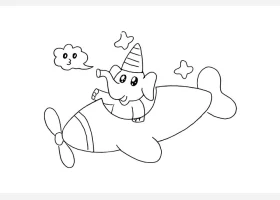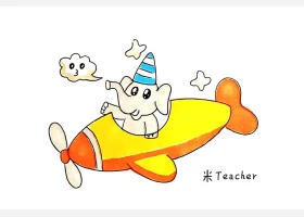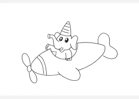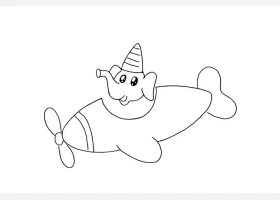 关于卡通、大象的简笔画,开飞机的小象简笔画教程。