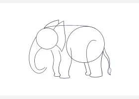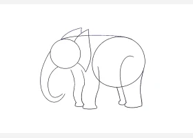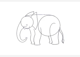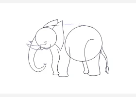 关于动物、大象的简笔画,可爱大象简笔画画法。