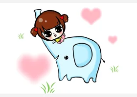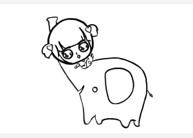 关于卡通、大象的简笔画,骑着大象的小女孩简笔画画法步骤。