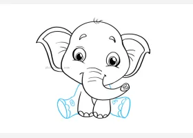 关于动物、大象的简笔画,可爱小象简笔画画法步骤。