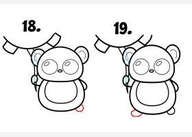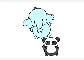 关于动物、熊猫的简笔画,一只可爱的熊猫拿着大象气球简笔画教程。