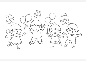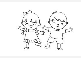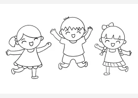 关于节日、六一儿童节的简笔画,六一儿童节一群开心的小朋友简笔画步骤。