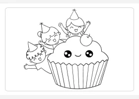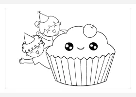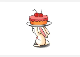 关于节日、儿童节的简笔画,六一儿童节一只可爱小兔子顶着美味蛋糕简笔画。