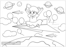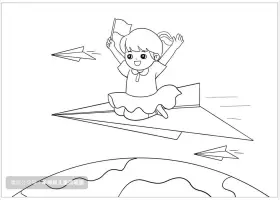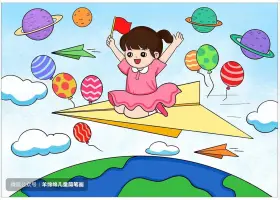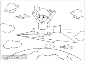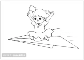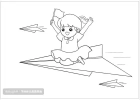 关于节日、儿童节的简笔画,教你画六一儿童节儿童画,六一儿童节坐在纸飞机上的小女孩简笔画。