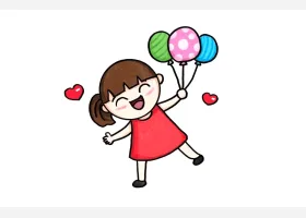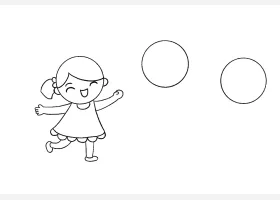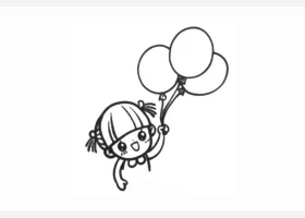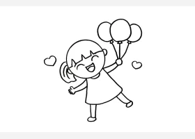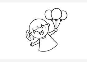 关于节日、小女孩的简笔画,儿童节绘画素材,儿童节拿着气球的小女孩简笔画画法步骤。