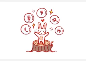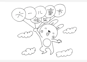 关于节日、六一儿童节的简笔画,儿童节快乐,可爱小兔子版六一儿童节简笔画。