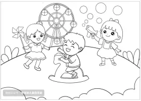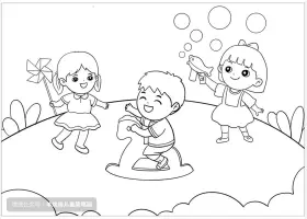 关于节日、吹泡泡的简笔画,六一儿童节简笔画绘画素材,小朋友们最爱的玩具吹泡泡简笔画。