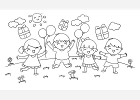 关于节日、六一儿童节的简笔画,漂亮的6.1party儿童节快乐简笔画。
