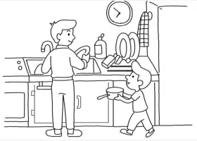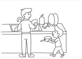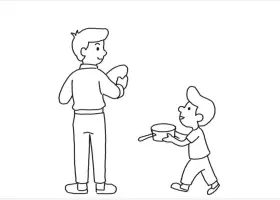关于节日、父亲节的简笔画,父亲节主题简笔画,父亲节我帮爸爸做家务简笔画步骤。