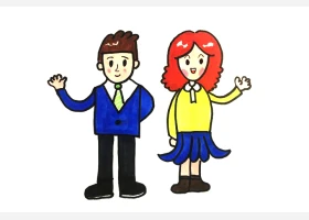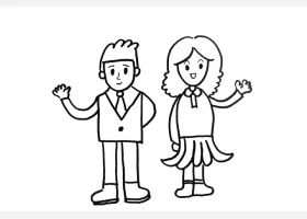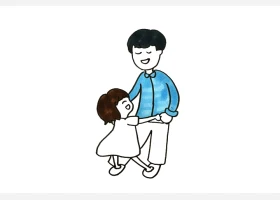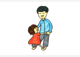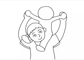 关于节日、父亲节的简笔画,父亲节简笔画,开心的父女俩简笔画详细画法。