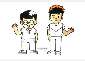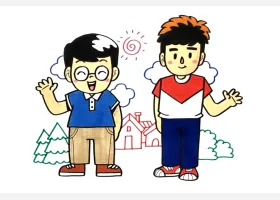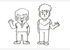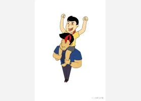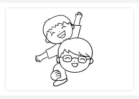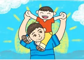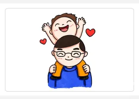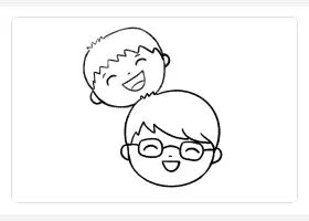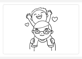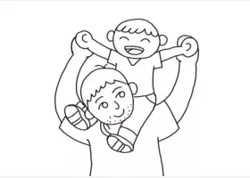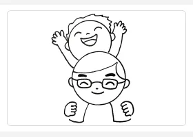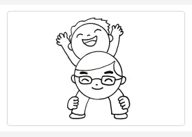 关于节日、父亲节的简笔画,父亲节简笔画,快乐的父子俩详细画法步骤。