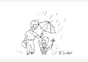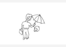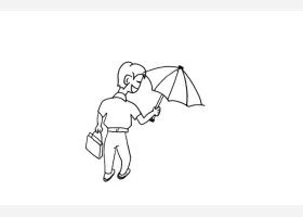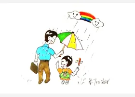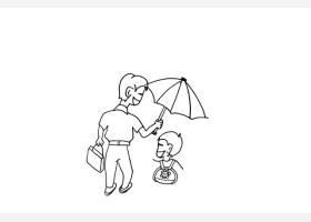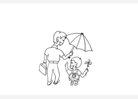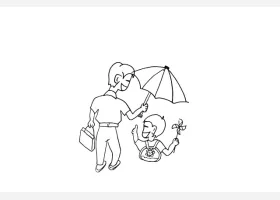 关于节日、父亲节的简笔画,爸爸给小孩打伞简笔画绘画步骤。