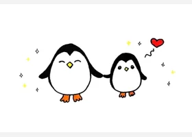 关于节日、企鹅的简笔画,父亲节主题简笔画企鹅爸爸和小企鹅的画法步骤。