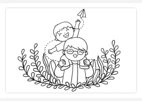 关于节日、父亲节的简笔画,陪儿子玩耍的父亲卡通简笔画。