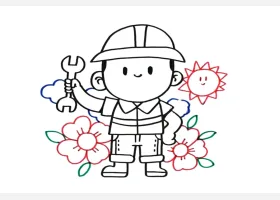 关于人物、工人叔叔的简笔画,劳动节画个可爱的工人叔叔。