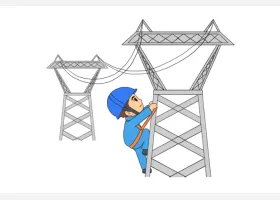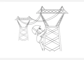 关于人物、电网工人的简笔画,劳动节致敬不同岗位劳动者,高空作业的电网工人简笔画。