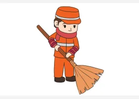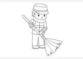 关于人物、环卫工人的简笔画,劳动节致敬不同岗位劳动者,劳动人物环卫工人。