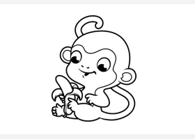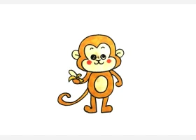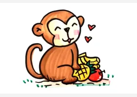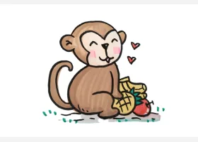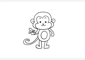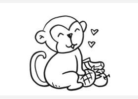 关于动物、小猴子的简笔画,拿水果的小猴子简笔画画法。
