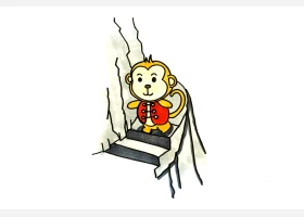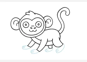 关于动物、小猴子的简笔画,调皮的小猴子简笔画步骤。