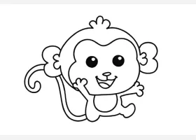 关于动物、猴子的简笔画,简单可爱的小猴子简笔画步骤。