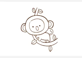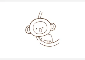 关于动物、小猴子的简笔画,在树枝上玩耍的猴子简笔画步骤。