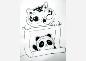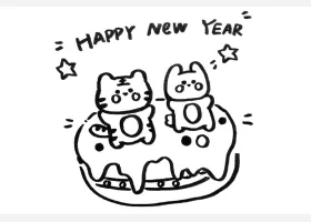关于节日、新年的简笔画,虎年新年贺卡卡通简笔画。