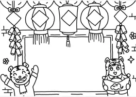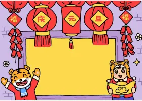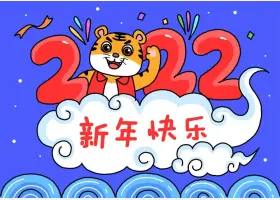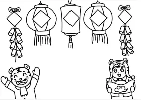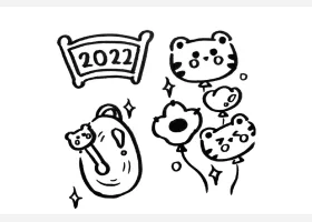 关于节日、虎年的简笔画,虎年新年快乐简笔画教程。