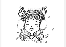 关于人物、小女孩的简笔画,可爱的圣诞节小女孩简笔画头像。