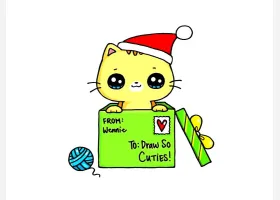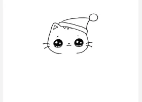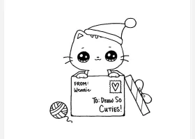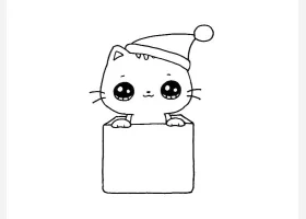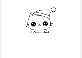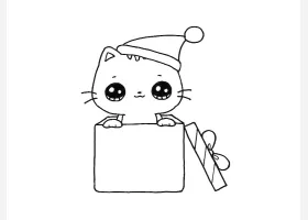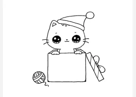 关于节日、小猫的简笔画,圣诞节礼物小猫简笔画画法步骤。