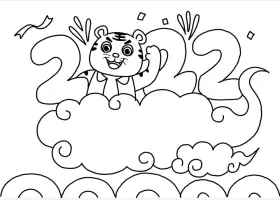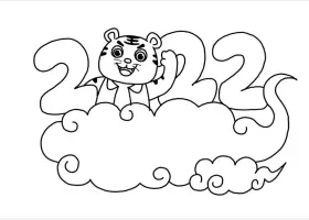 关于节日、虎年的简笔画,虎年元旦贺卡简笔画教程。