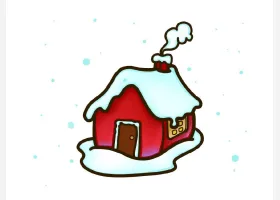 关于建筑、房子的简笔画,圣诞节雪屋简笔画画法步骤。