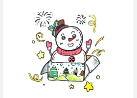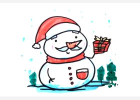 关于节日、圣诞节的简笔画,圣诞雪人简笔画步骤。