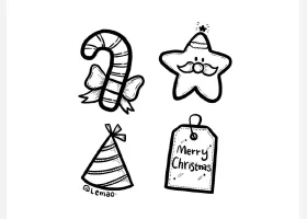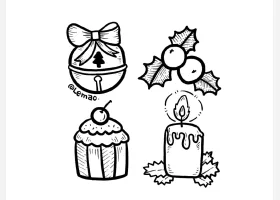 关于节日、圣诞节的简笔画,一组漂亮的圣诞节小物简笔画。
