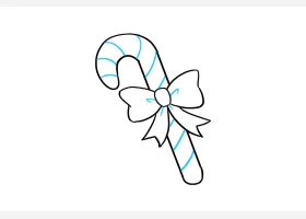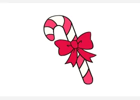 关于节日、拐杖糖的简笔画,漂亮的圣诞节拐杖糖简笔画教程。