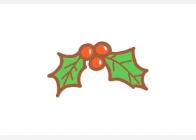 关于节日、冬青的简笔画,圣诞节装饰冬青简笔画步骤。