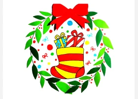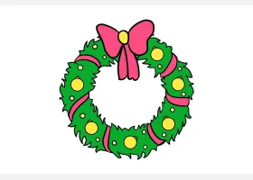 关于节日、圣诞节的简笔画,漂亮的圣诞花环简笔画教程。
