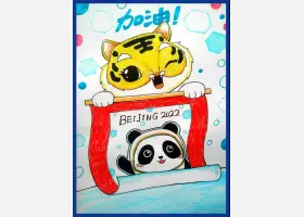 关于冰墩墩、冰墩墩的简笔画,虎年冬奥会双重元素主题卡通简笔画。