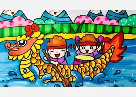 关于节日、端午节的简笔画,简单的端午节赛龙舟简笔画步骤。