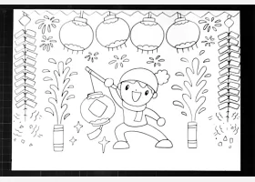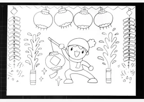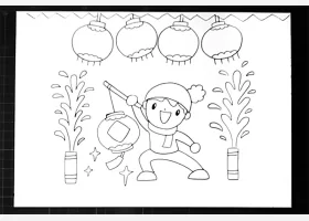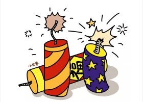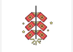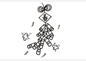 关于节日、鞭炮的简笔画,漂亮的春节鞭炮简笔画画法步骤。