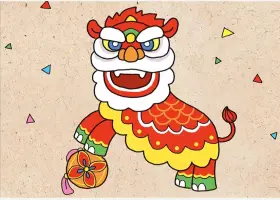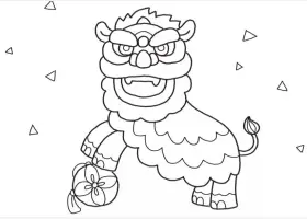 关于节日、春节的简笔画,热热闹闹迎新春,关于春节舞狮表演简笔画。