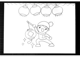 关于节日、灯笼的简笔画,春节元素灯笼的简笔画步骤。