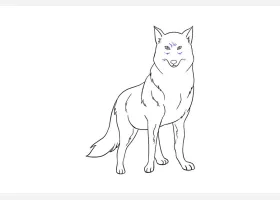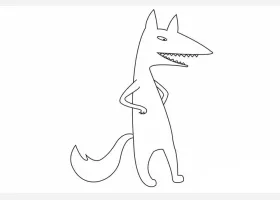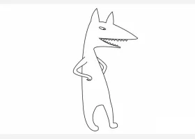 关于动物、大灰狼的简笔画,站着的狼简笔画教程。