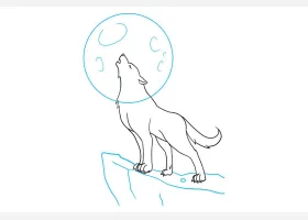 关于动物、狼的简笔画,可爱的嚎叫的狼简笔画教程。
