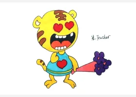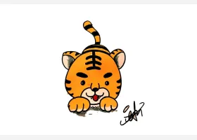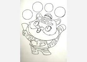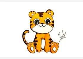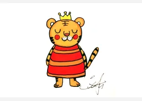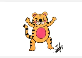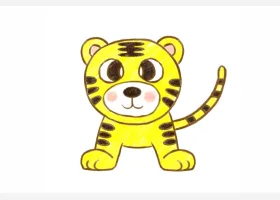 关于动物、老虎的简笔画,画一只可爱的小老虎简笔画步骤。