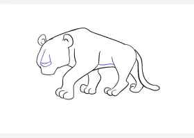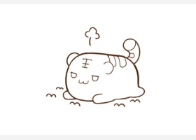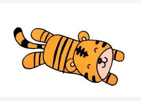 关于卡通、老虎的简笔画,十二生肖简笔画,趴着的老虎简笔画画法。