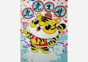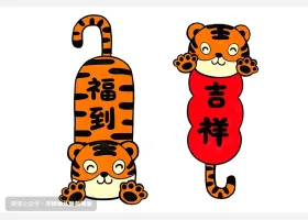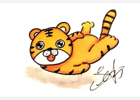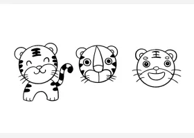 关于节日、虎年的简笔画,教你画可爱的小老虎简笔画。